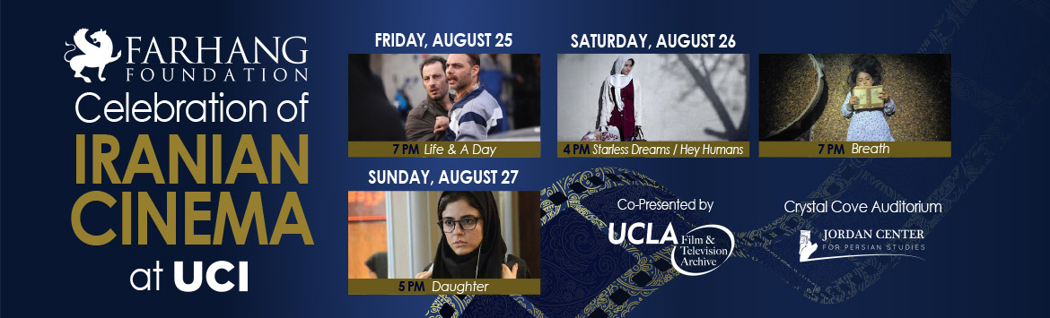 Join us for the 2nd Annual CELEBRATION OF IRANIAN CINEMA in Orange County at the University of California, Irvine August 25-27, 2017. In collaboration with the Jordan Center for Persian Studies, UCI. Special thanks to our co presenter: The UCLA Film & Televisions Archives.