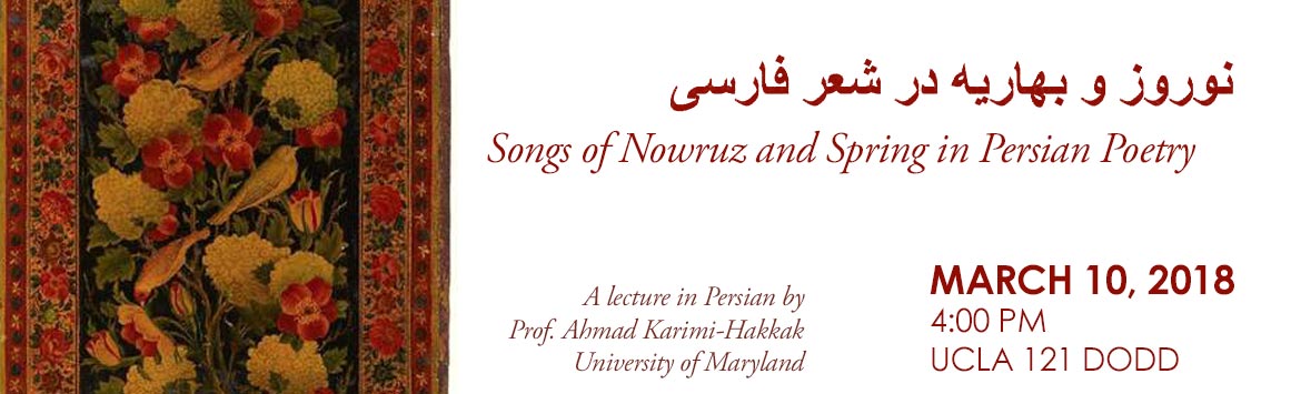 The celebration known as Nowruz not only marks the start of the Iranian New Year at the vernal equinox, but it has also been widely celebrated over several millennia across a vast expanse from Anatolia, the Iranian plateau, to West and Central Asia. As a theme too, Nowruz and the spring have been a staple of Persian poetry in pre- Islamic and Islamic Iran up to modern times. The theme of Nowruz has been ceremoniously recited at royal courts, as well as in cities and villages across the Iranian world, and has provided a gauge by which the ebbs and flows of Iranian history and culture may be measured through the ages. The lecture shall explore the theme of Nowruz and various stylistic approaches to it.